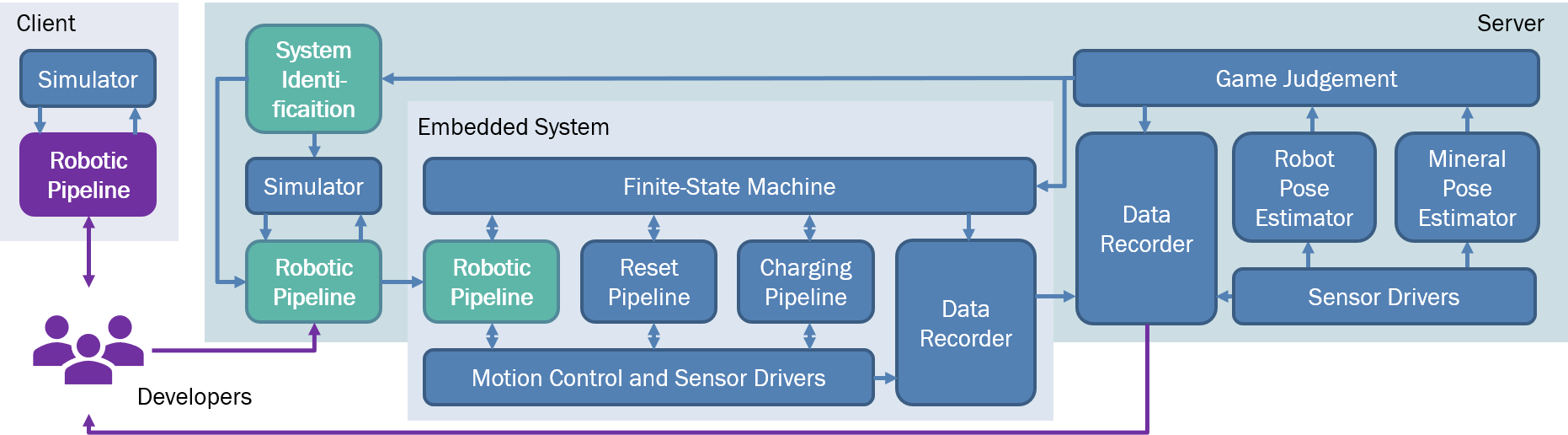 the simulator and can remotely access the physical robot in the game field for a limited number of verifications.